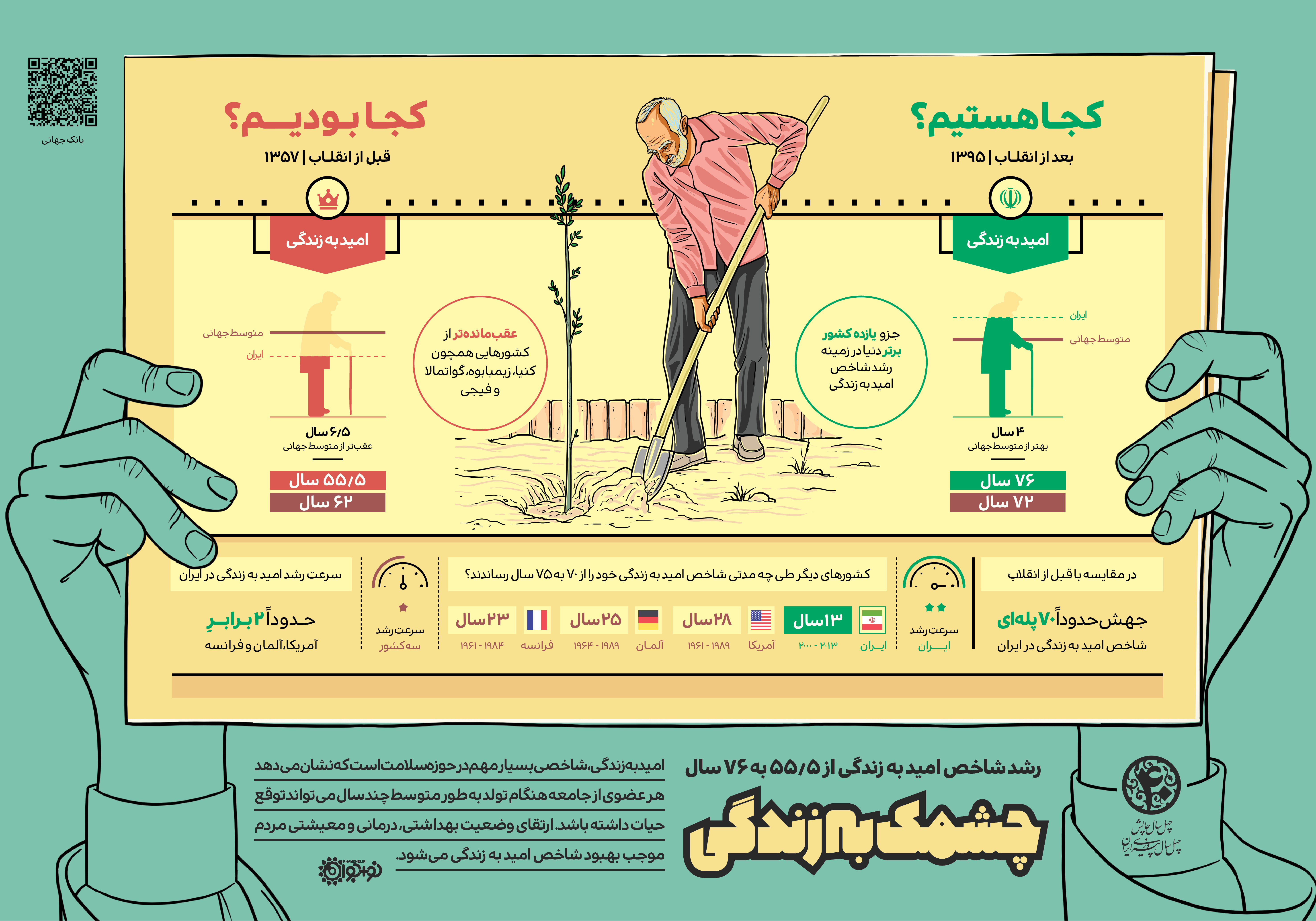 رشد شاخص امید به زندگی از 55 سال به 76 سال